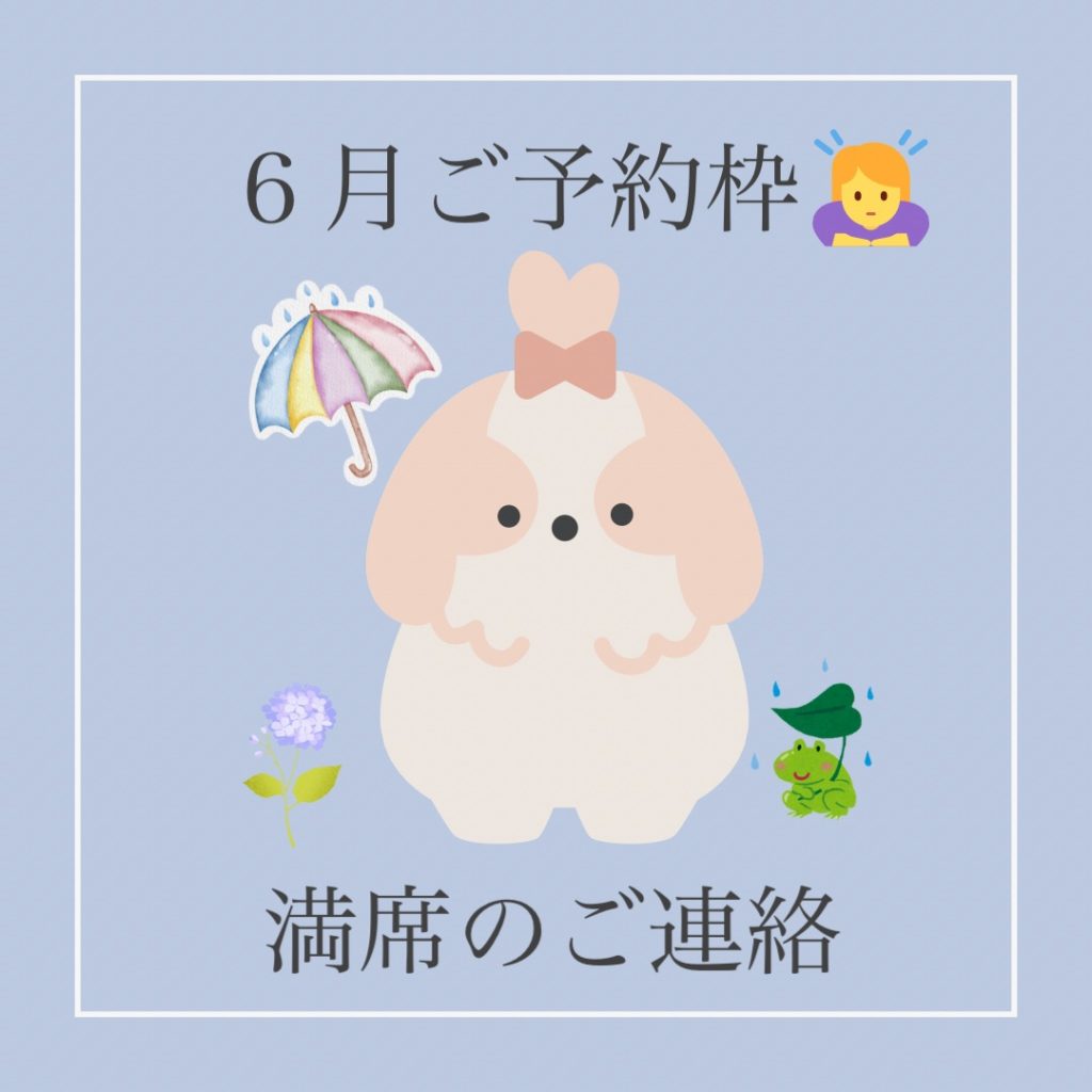 皆様のお支えのもとお陰様で6月のご予約枠は