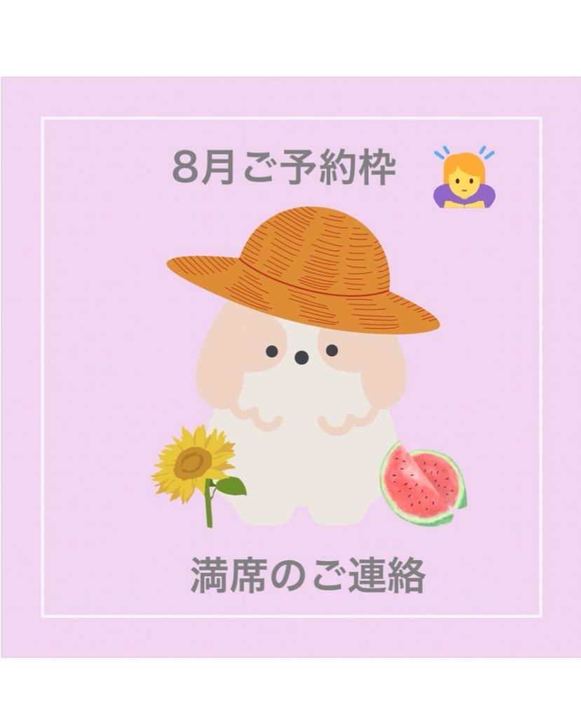 〜8月ご予約枠満席のご連絡〜