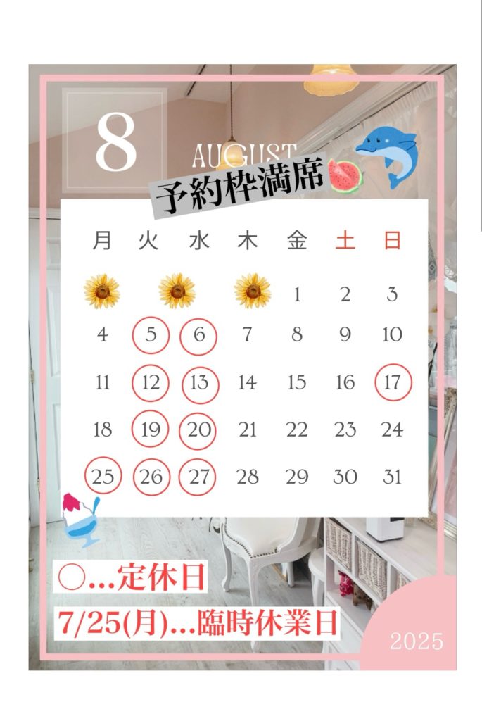 現在8月のご予約枠は現在満席となりました。重ね重ねお礼申し上げます😊🙇♀️🌸