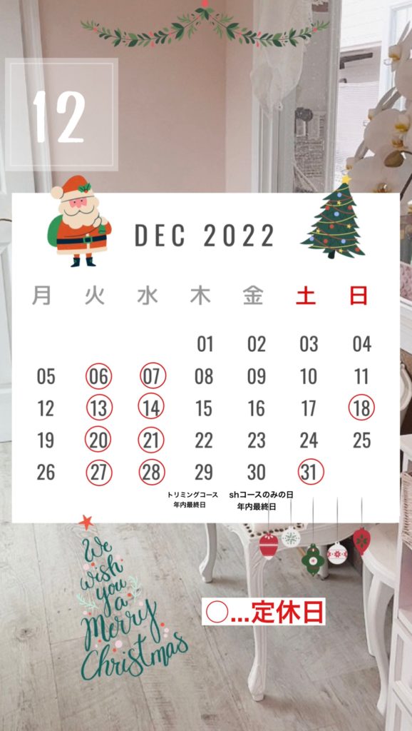 12月は通常時よりご予約が大変埋まりやすくなります為、ご予約ご希望者様は大変お手数をおかけ致しますが早めのご連絡を宜しくお願いいたします🙇♀️