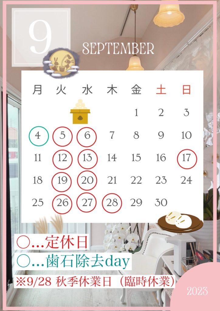 お待たせ致しました🙇♀️ 9月の営業スケジュールをアップさせて頂きます🍀(ご予約時のご参考にして頂けましたら幸いです☺️)